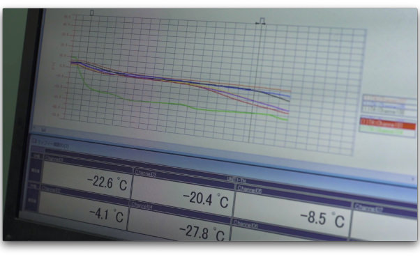 ただ「冷やす」だけではなく食材に合わせた冷やし方を徹底的に追及。冷却・凍結・解凍・調理後の食材評価を行い新たな開発へつなげていきます。